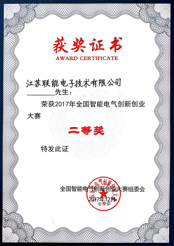 2017全國(guó)智能電氣創(chuàng)新創(chuàng)業(yè)大賽二等獎(jiǎng)
