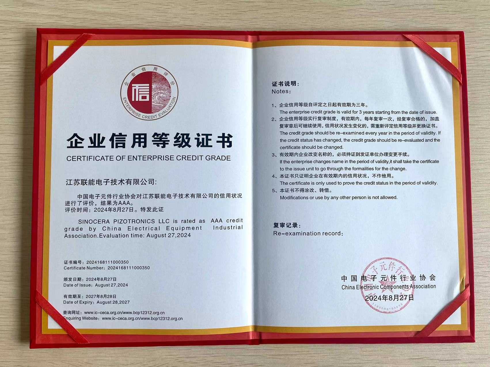 近日,中國電子元件行業(yè)協(xié)會發(fā)布了第二十批中國電子元件行業(yè)企業(yè)信用等級評價結(jié)果。Dafa888手機(jī)版登錄獲評“企業(yè)信用評價AAA級信用企業(yè)”。